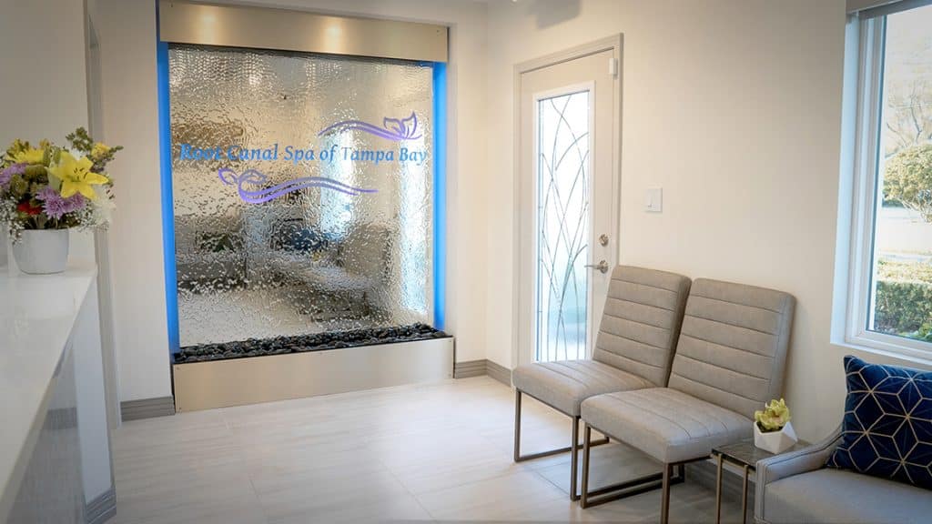 Arriving at Root Canal Spa of Tampa Bay, you will be immersed in a tranquil ambiance thoughtfully crafted to reassure and set you at ease. Our practice is designed with a unique waterfall, eclectic contemporary artwork that adorns the walls and inspires calmness, noise-canceling headphones, comforting luxuries, and soothing aromatherapy. Every detail has been carefully considered to ensure your visit is not only relaxing but also a truly stress-free and positive experience.